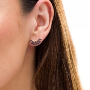 GarnetandBlueSapphireSymbolStudEarringsinSterlingSilverand10KGold:GarnetandBlueSapphireSymbolStudEarringsinSterlingSilverand10KGold